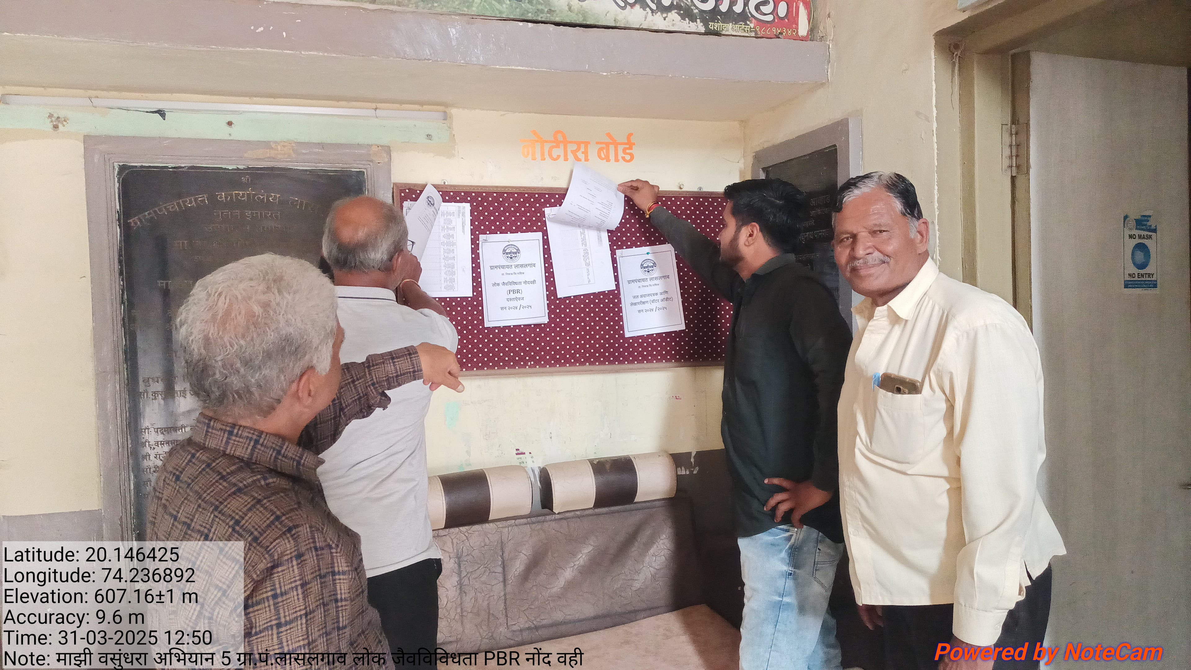 माझी वसुंधरा अभियान ५ ग्रा, पं, लासलगाव लोक जैवविविधता PBR नोंद वही