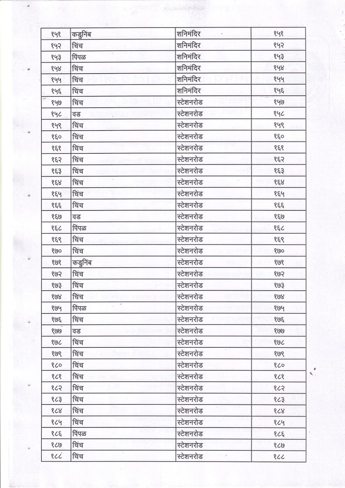 वृक्ष गणना नोंद व प्रसिद्ध यादी - 3